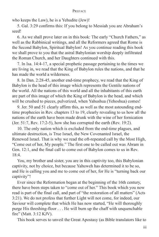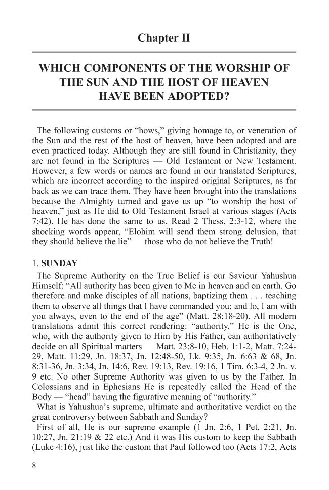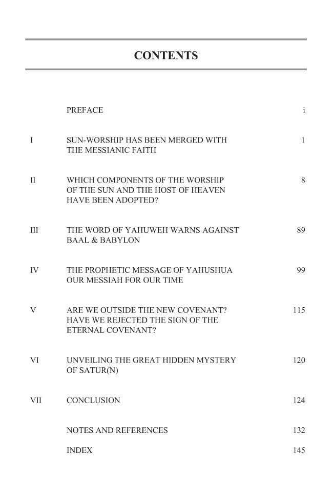 This book contains a wealth of thoroughly researched material on how elements from ancient religions infiltrated the early Messianic Faith, challenging readers to re-examine the doctrines of their faith and search for the truth in the Scriptures.