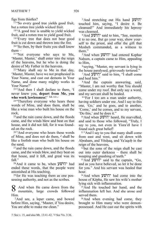 The Scriptures is a literal translation of the Tanakh and the Messianic Scriptures.